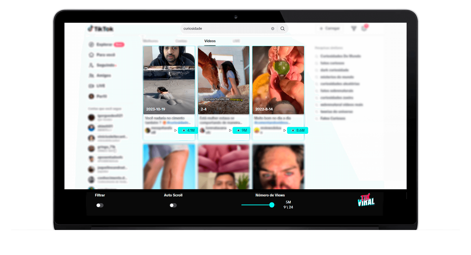 Ao utilizar nossa extensão no seu Google Chrome você terá um painel junto a biblioteca de vídeos do TikTok para encontrar os vídeos com mais visualizações da plataforma.